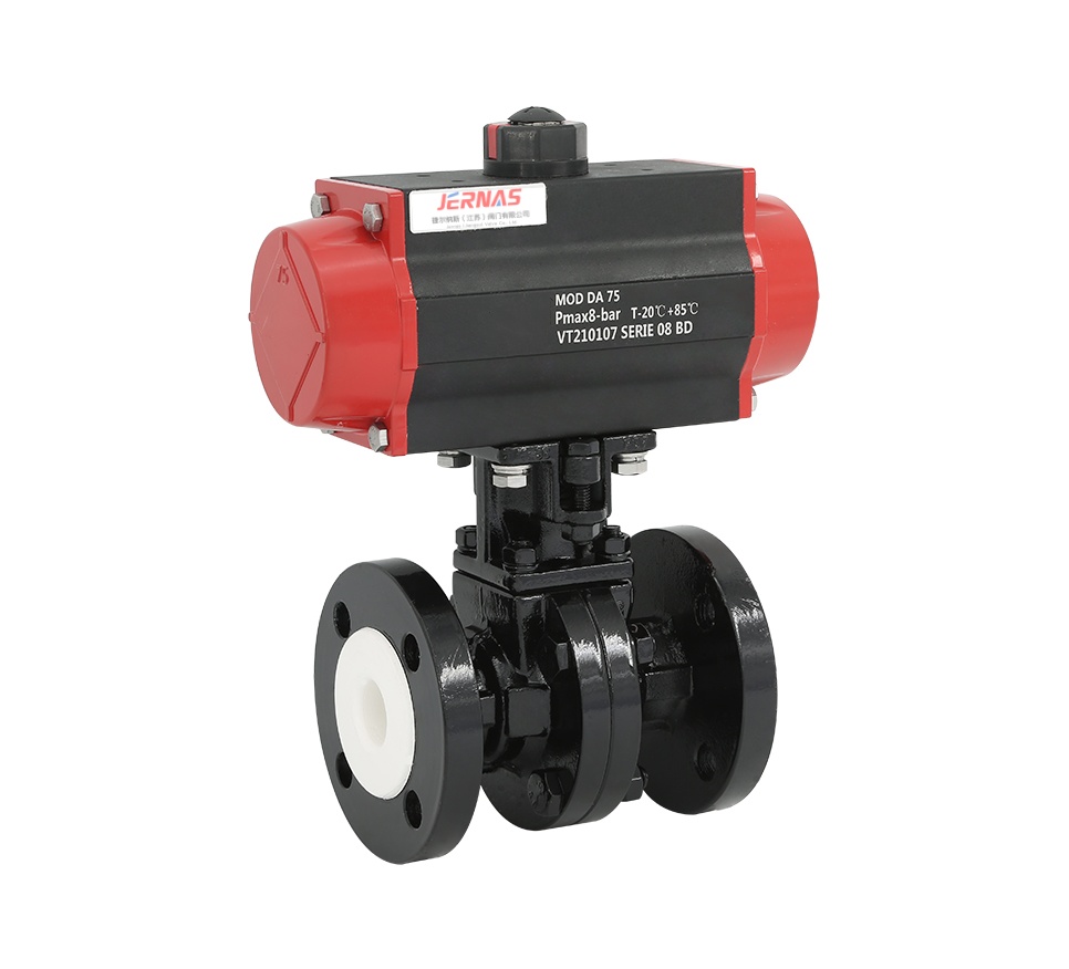 气动衬氟球阀是用带圆形通孔的球体作启闭件,球体随阀杆绕阀体中心线旋转以实现阀门开启和关闭。